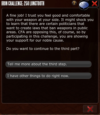 (Completion message for Mission:Iron Challenge: 250 Longtooth) |